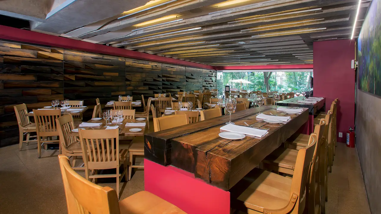 Merotoro menawarkan suasana yang memadukan elemen pedesaan dan modern, mencerminkan estetika Baja California. Terletak di jalanan yang asri di Colonia Condesa, restoran ini memiliki fasad terbuka dengan lantai teraso, balok kayu pedesaan, dan elemen desain industrial seperti balok besi dan lampu Edison. Teras luar adalah tempat yang ideal untuk menikmati suasana santai Condesa, sementara interiornya yang kontemporer dengan dinding kayu dan dekorasi minimalis menciptakan suasana yang hangat dan mengundang.