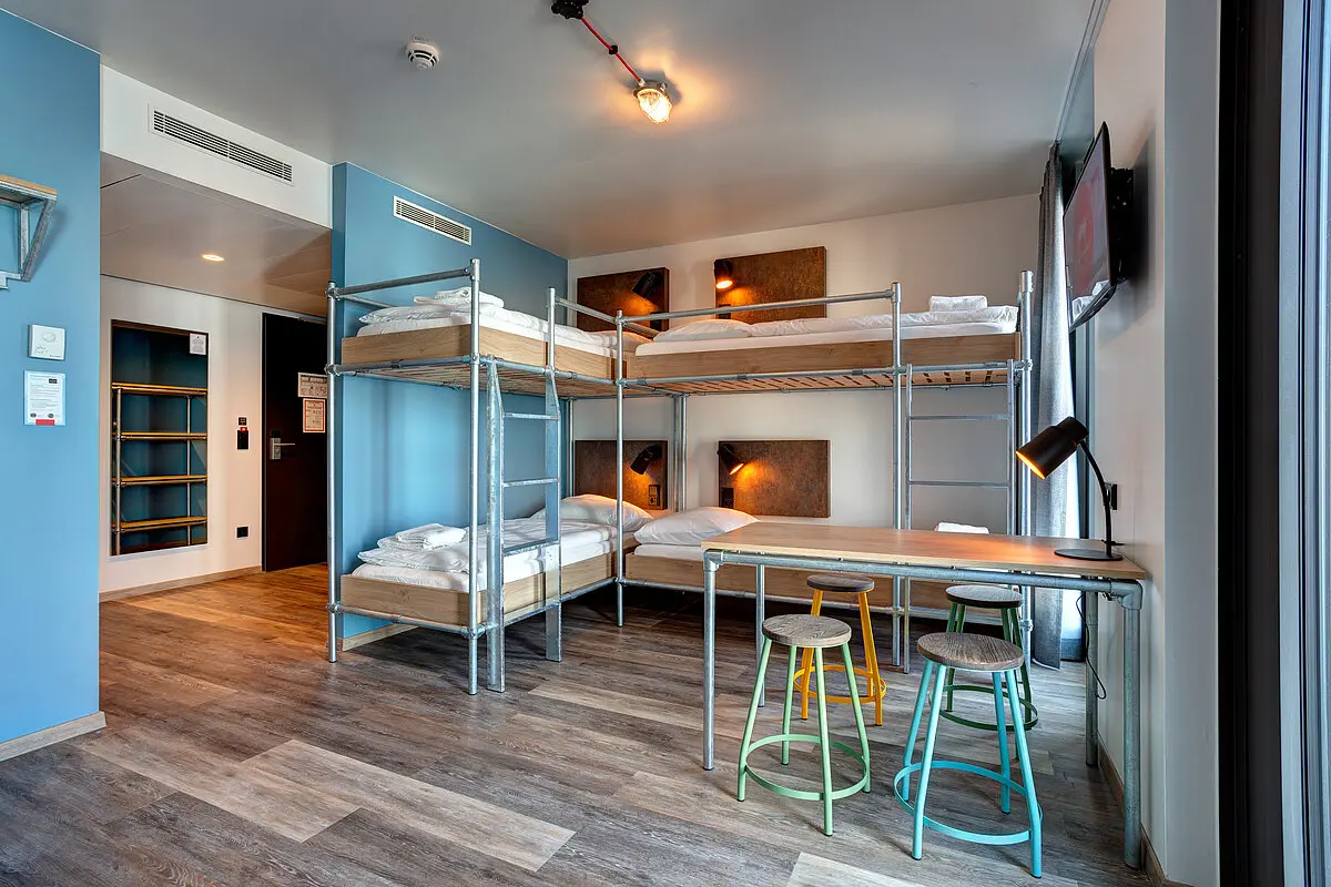 • Kamar dan Asrama: Hotel ini menyediakan berbagai pilihan akomodasi, mulai dari kamar pribadi (single, double, atau keluarga) hingga asrama modern dengan maksimal 6 tempat tidur, cocok untuk backpacker atau kelompok pelajar. Semua kamar dilengkapi dengan kamar mandi pribadi, shower, TV layar datar, dan Wi-Fi gratis. Beberapa kamar bahkan menawarkan pemandangan kota yang menarik.