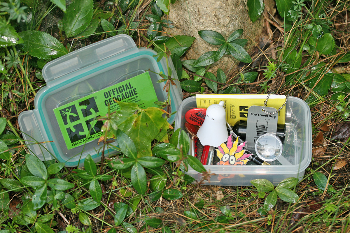 Mencari Cache: Cache bisa berupa kotak kecil, tabung, atau wadah kreatif lainnya, sering kali disamarkan agar menyatu dengan lingkungan.