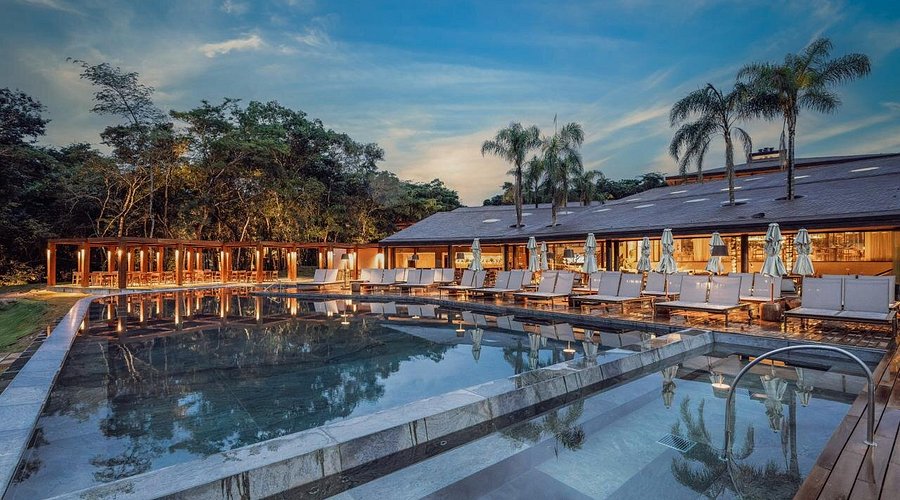 Fasilitasnya dirancang untuk relaksasi dan petualangan: dua kolam renang (satu outdoor infinity pool dengan panorama hutan, satu indoor berpemanas), spa dengan perawatan berbasis tanaman lokal, pusat kebugaran lengkap, brinquedoteca (ruang bermain anak) dengan monitor khusus, dan ruang acara untuk pernikahan atau workshop seni. Dua restoran—satu fine dining dengan menu organik dari kebun Inhotim (fokus pada masakan Minas Gerais seperti feijoada modern)—menyajikan hidangan berkelanjutan. Lobby seluas 500 m² berfungsi sebagai galeri mini, menampilkan karya seniman Brasil. Akses ke Inhotim tak tertandingi: tamu bisa berjalan kaki ke gerbang, dengan shuttle gratis dan diskon tiket museum.